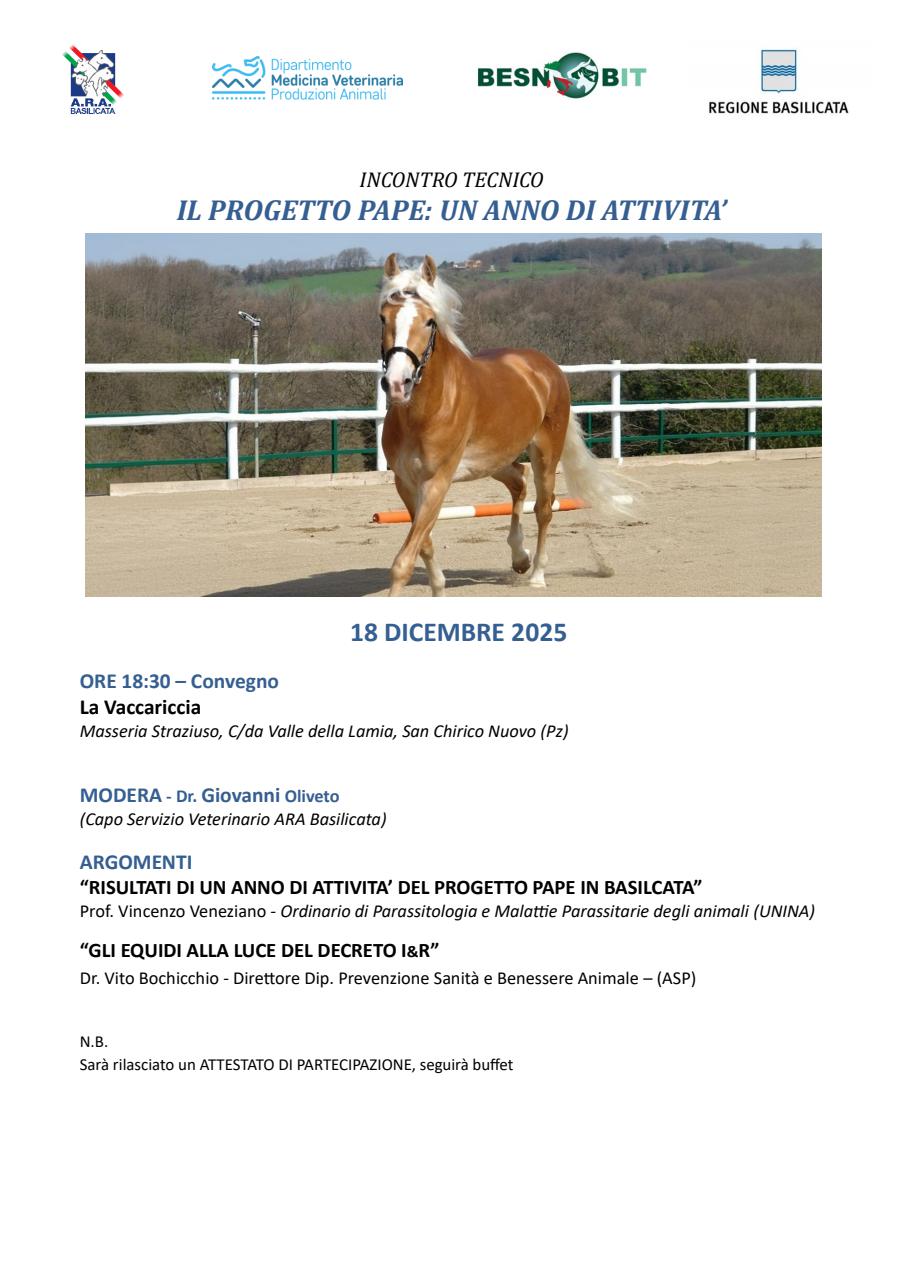 ARA Basilicata organizza un incontro tecnico "IL PROGETTO PAPE: UN ANNO DI ATTIVITA’" per il 18/12/2025 presso La Vaccariccia - San Chirico Nuovo (Pz)
